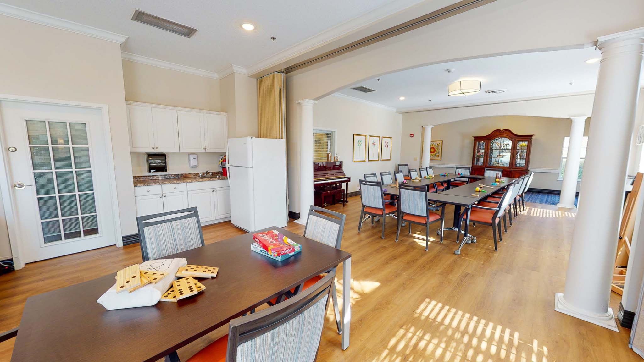 A comfortable area for residents to enjoy board games, arts and crafts, trivia and brain teasers, and active games like pocket billiards.